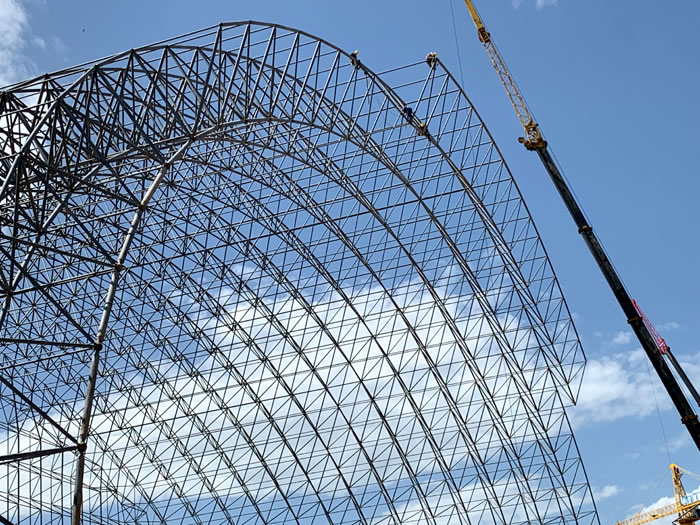 (2)网架加工前应对现场尺寸进行复测,确认无误后方可进行加工、安装;网架制作、运输、安装应遵守《空间网格结构技术规程》JGJ7-2010、《钢网架宿州螺栓球节点》JG/T 10-2009、《钢网架宿州螺栓球节点用高强度螺栓》 GB/T 16939-2016、《宿州钢结构宿州工程宿州施工规范》 GB50755-2012、《宿州钢结构宿州工程施工质量验收标准》 GB50205-2020。